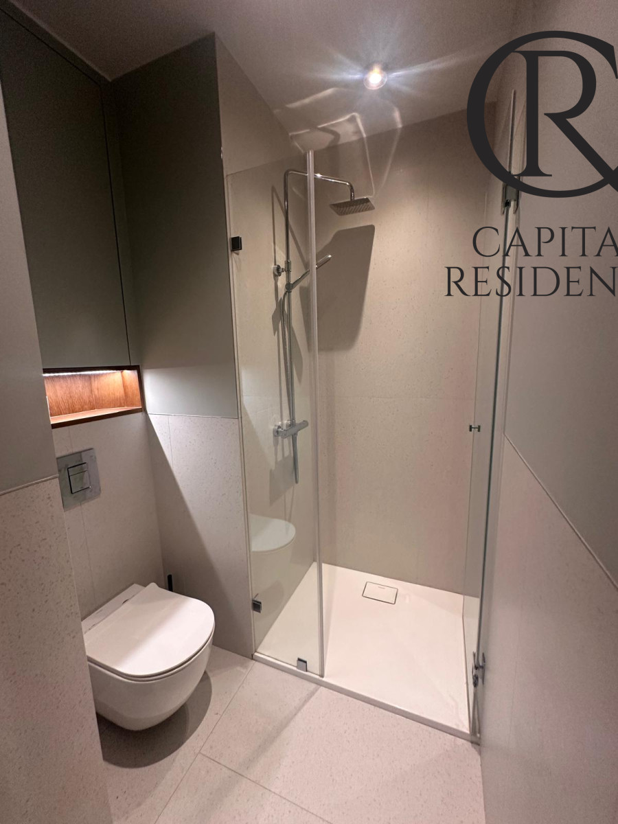 • Przestronna sypialnia z salonem kąpielowym z wanną, dwiema umywalkami, granitowym blatem, bidetem i WC, grzejnikiem łazienkowym z grzałką elektryczną