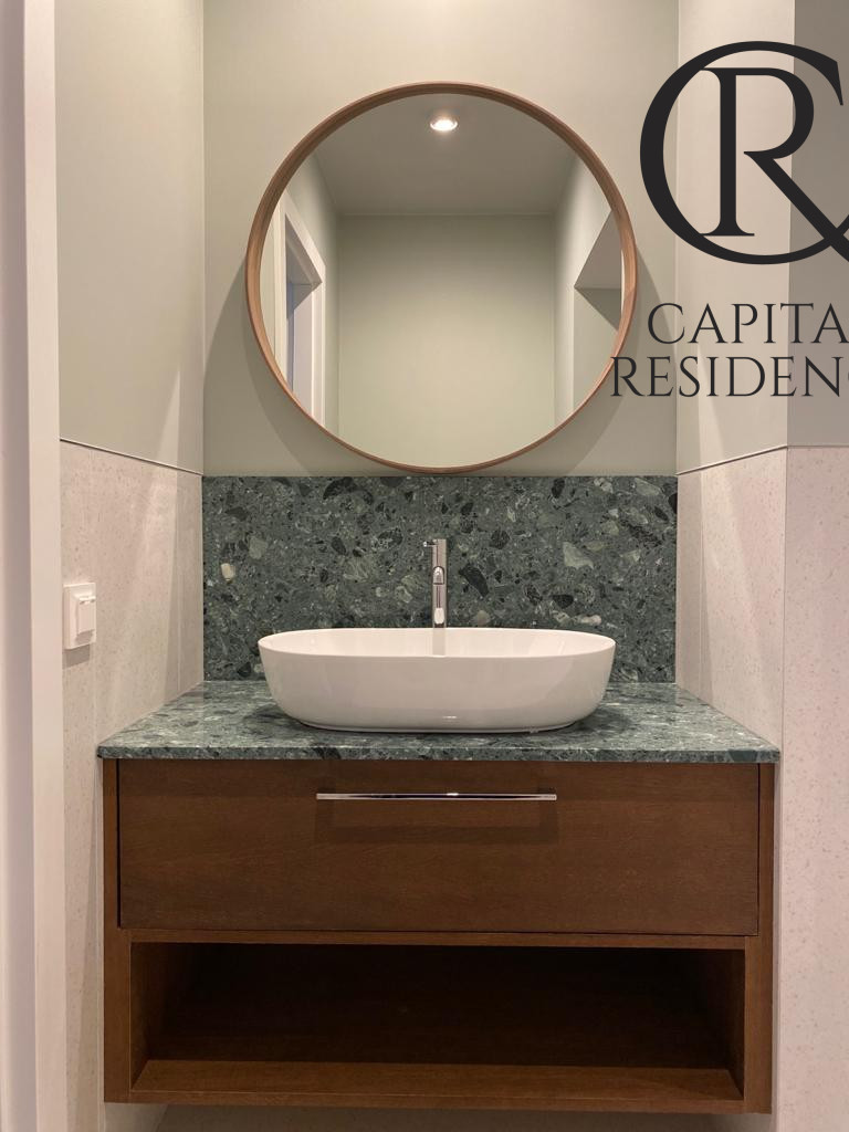 • Przestronna sypialnia z salonem kąpielowym z wanną, dwiema umywalkami, granitowym blatem, bidetem i WC, grzejnikiem łazienkowym z grzałką elektryczną