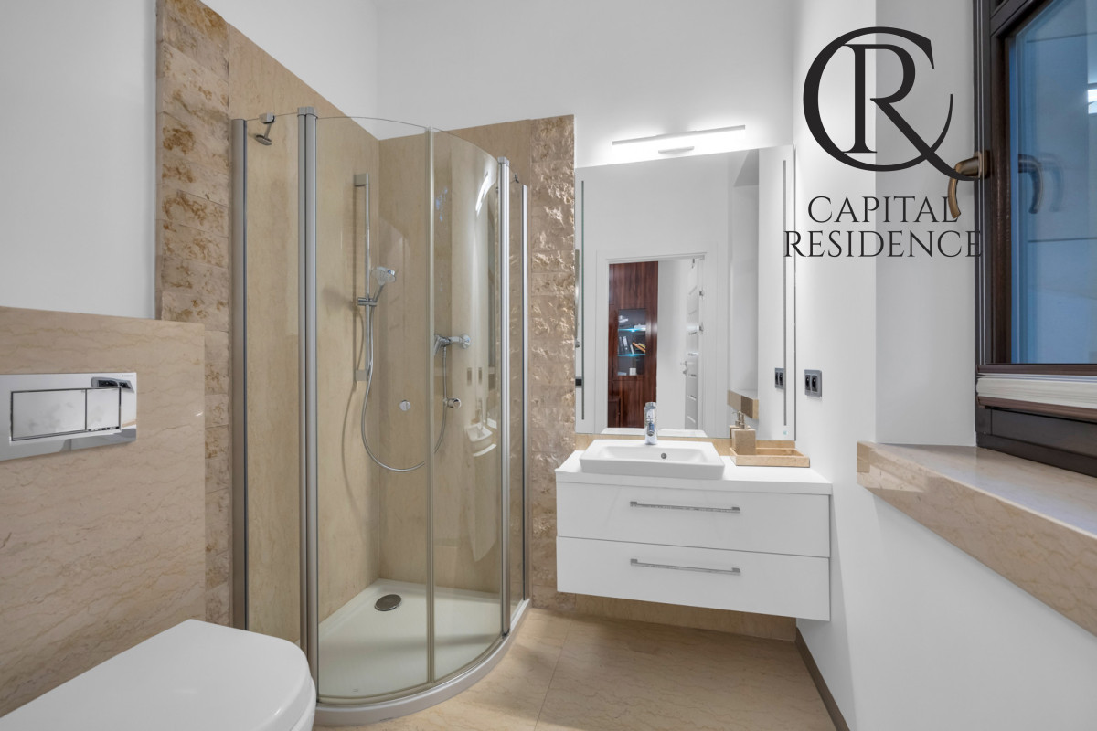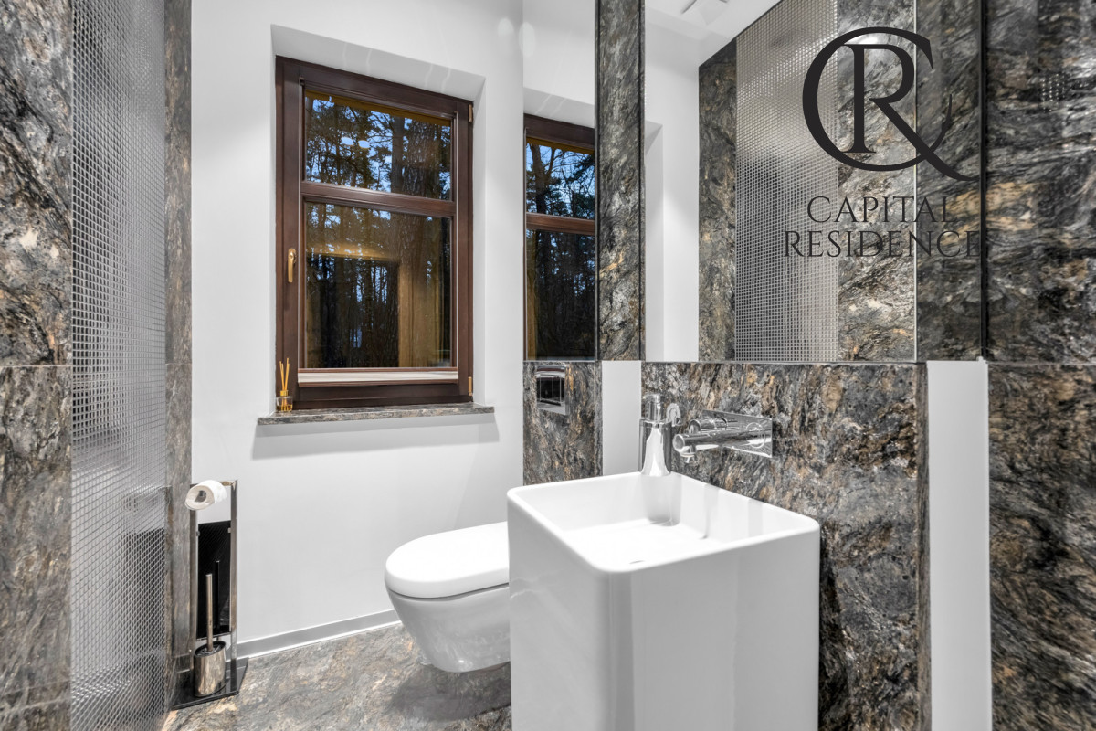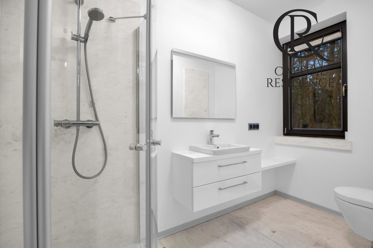 Wszystkie łazienki zostały również wykończone w najwyższej klasy marmurze, zapewniając luksusowy charakter przestrzeni.