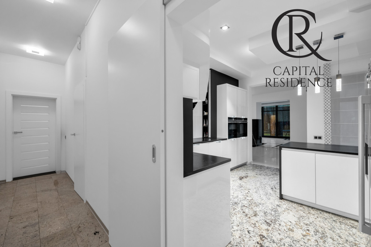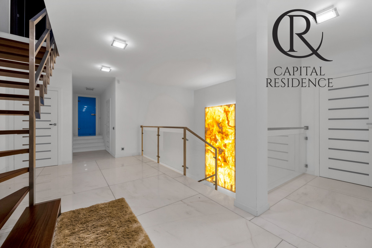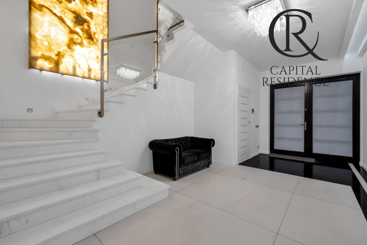 W całym domu podłogi wykończone są wysokiej jakości marmurem, co podkreśla elegancję wnętrz.