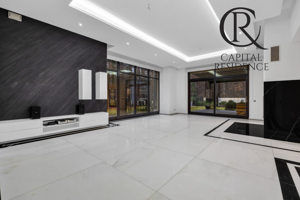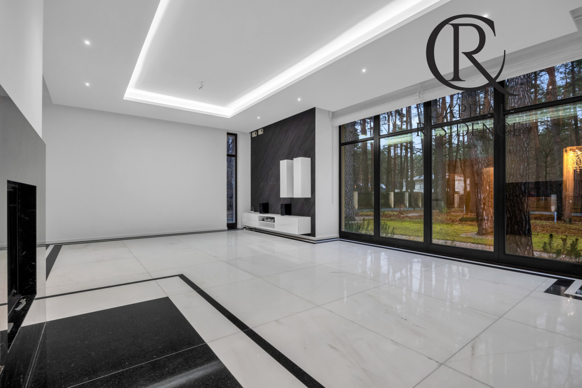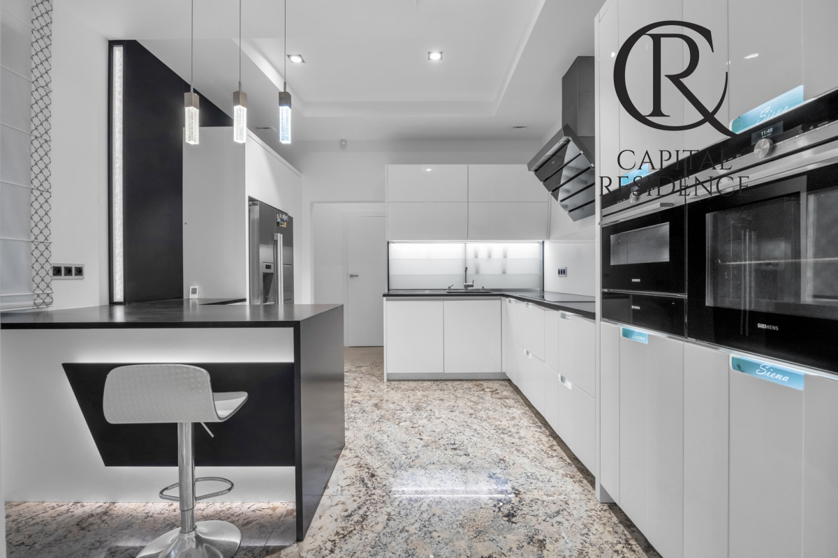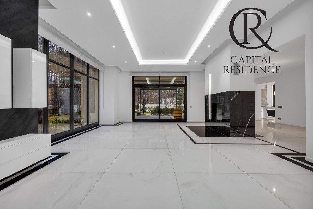 Dom został wykończony w stylu Modern Classic, z wykorzystaniem materiałów najwyższej klasy, takich jak kamień i marmur w spokojnych kolorach bieli i czerni.