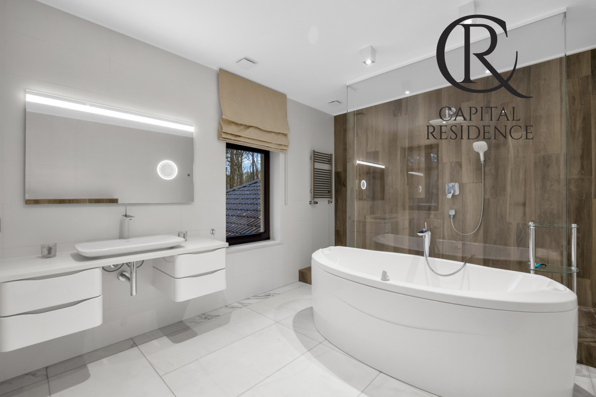Z przyjemnością prezentujemy luksusowy dom o nowoczesnej architekturze, idealny dla osób ceniących nowoczesny styl życia w spokojnym otoczeniu. Nieruchomość o imponującej powierzchni użytkowej 377,95 m² i całkowitej 467,45 m², posadowiona na pięknej działce ze starodrzewem o powierzchni 1890 m², łączy nowoczesność, funkcjonalność i prestiż.