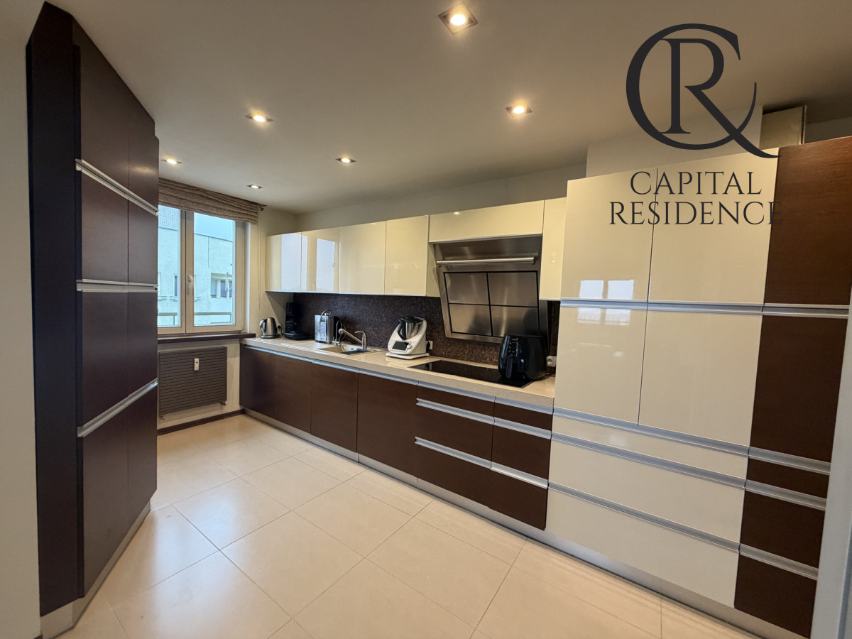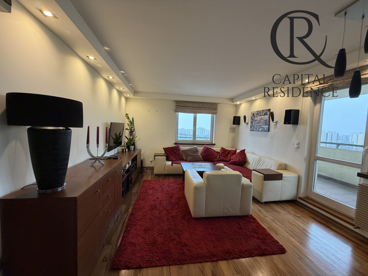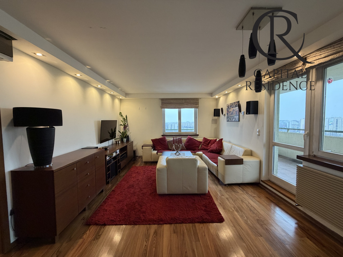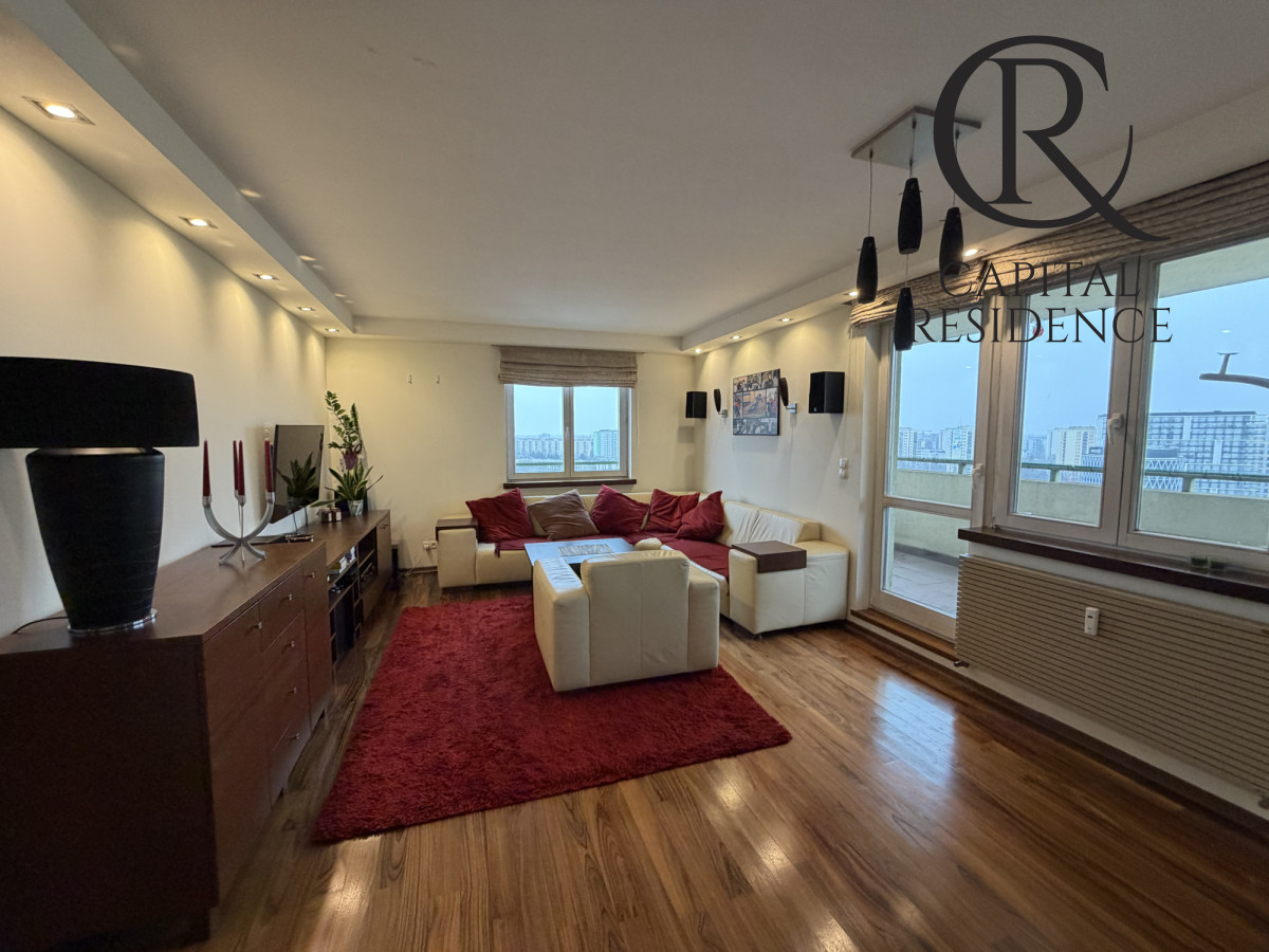 Na sprzedaż przestronny, zaprojektowany przez architekta wnętrz apartament o powierzchni 105 m² położony na ostatnim - 15. piętrze nowoczesnego budynku z 2007 roku z windą.